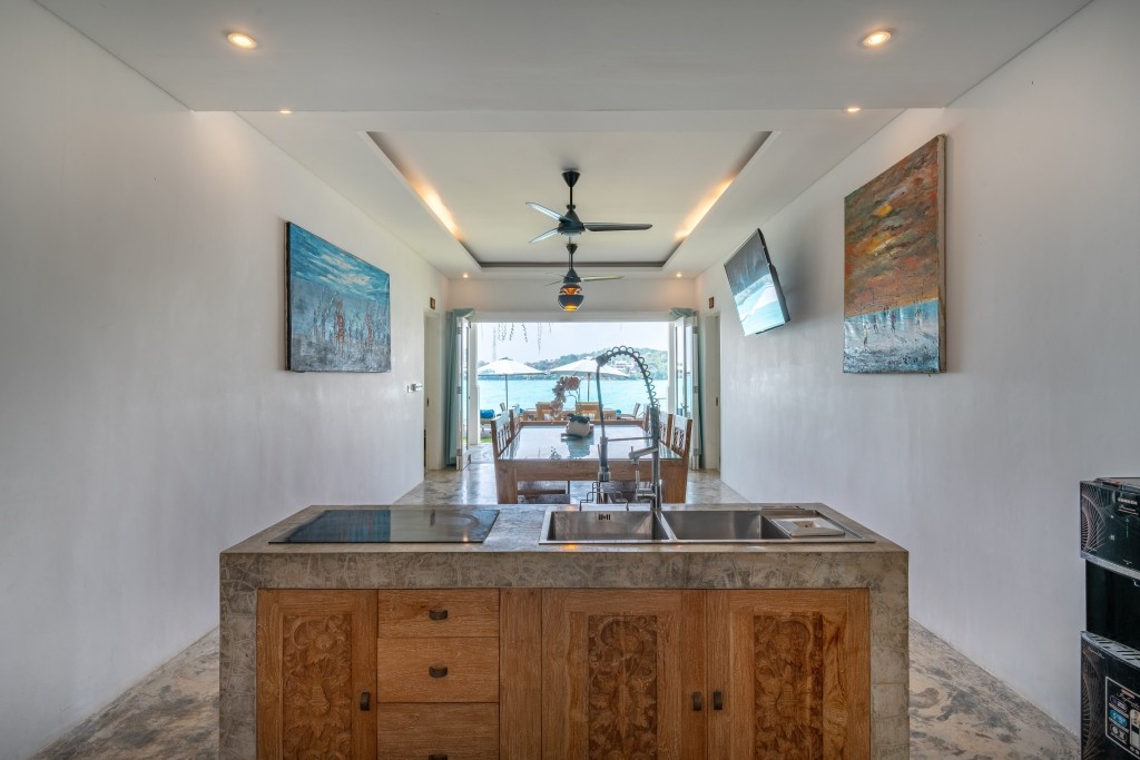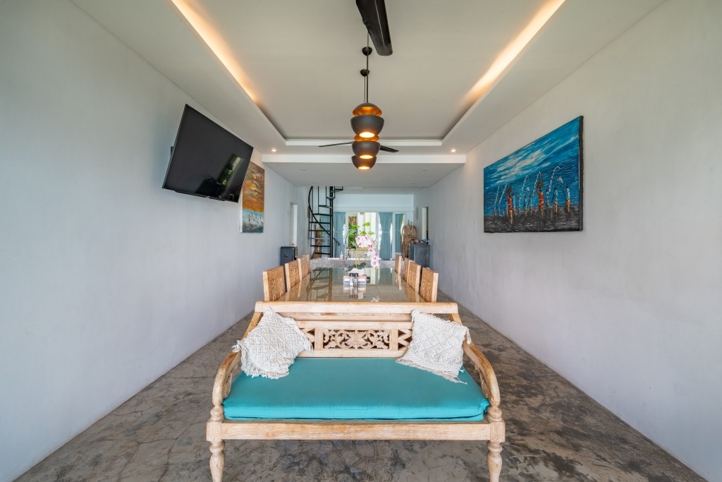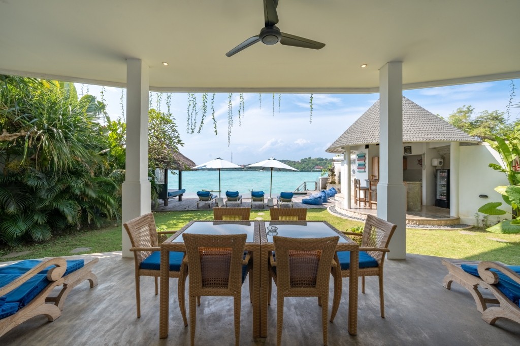 A selection of options including warm dishes, pancakes and fruits is available for breakfast, and breakfast in the room is also available. The villa is fully staffed and can prepare local dishes and western food with fully imported Australian beef and local sea food. The bar is fully stocked and caters to most needs with a top self alcohol selection and one of the best cocktail lists on the island.